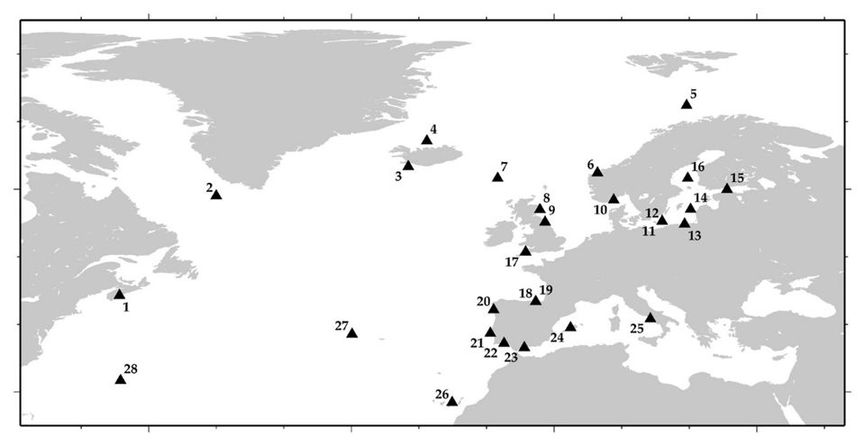 Based on available data in the WGZE-associated time series, it was possible to calculate the Mean Size vs Total Stock (MSTS) indicator for the most time series sites (see Figure 1).