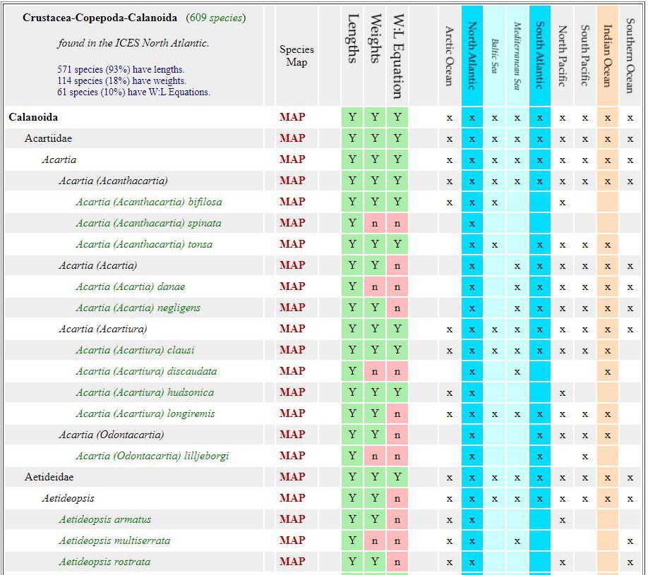 To the right is a link to the WGZE Biometrics Atlas, which currently does not include data (yet) but summarizes the data coverage by taxonomic group and species and ocean regions.